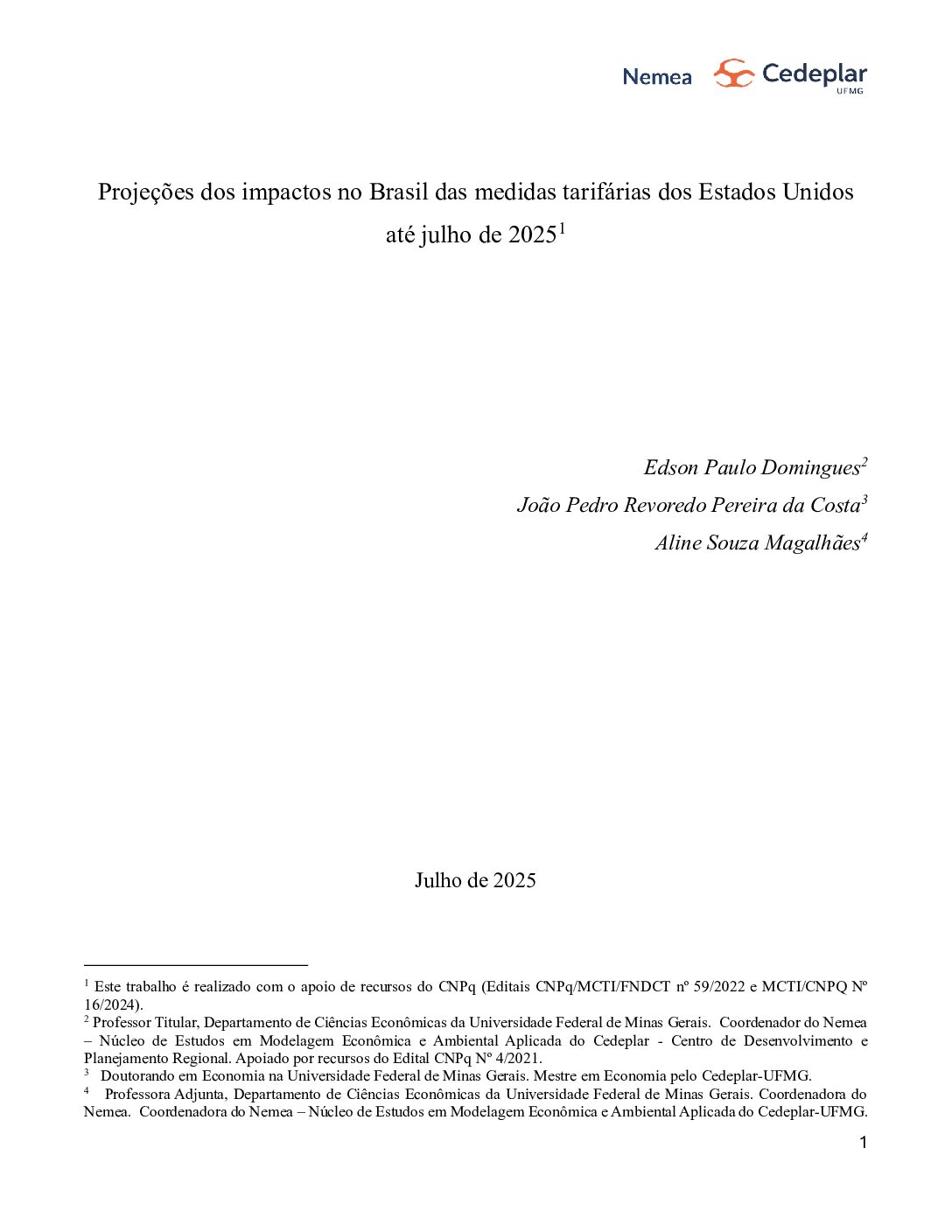 Caso entrem em vigor, as barreiras tarifárias impostas pelo governo dos Estados Unidos causarão impacto negativo mundial. A elevação das tarifas sobre importações dos EUA pode resultar em queda de 0,12% no PIB global. O comércio internacional pode ter redução de 2,1%, equivalente a US$ 483 bilhões. A estimativa é de estudo econômico da Universidade Federal de Minas Gerais (UFMG), divulgado no dia 11 de julho.